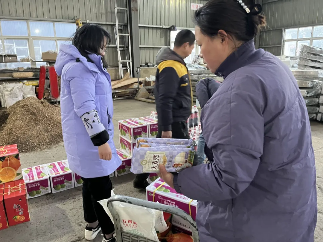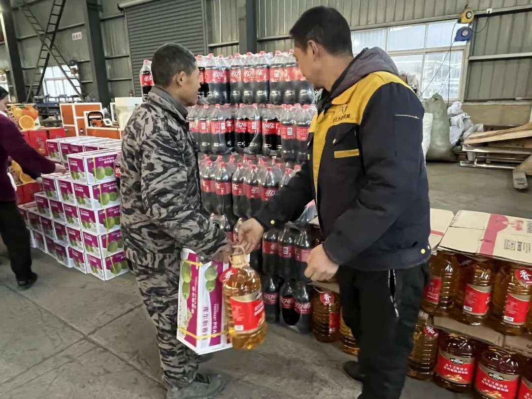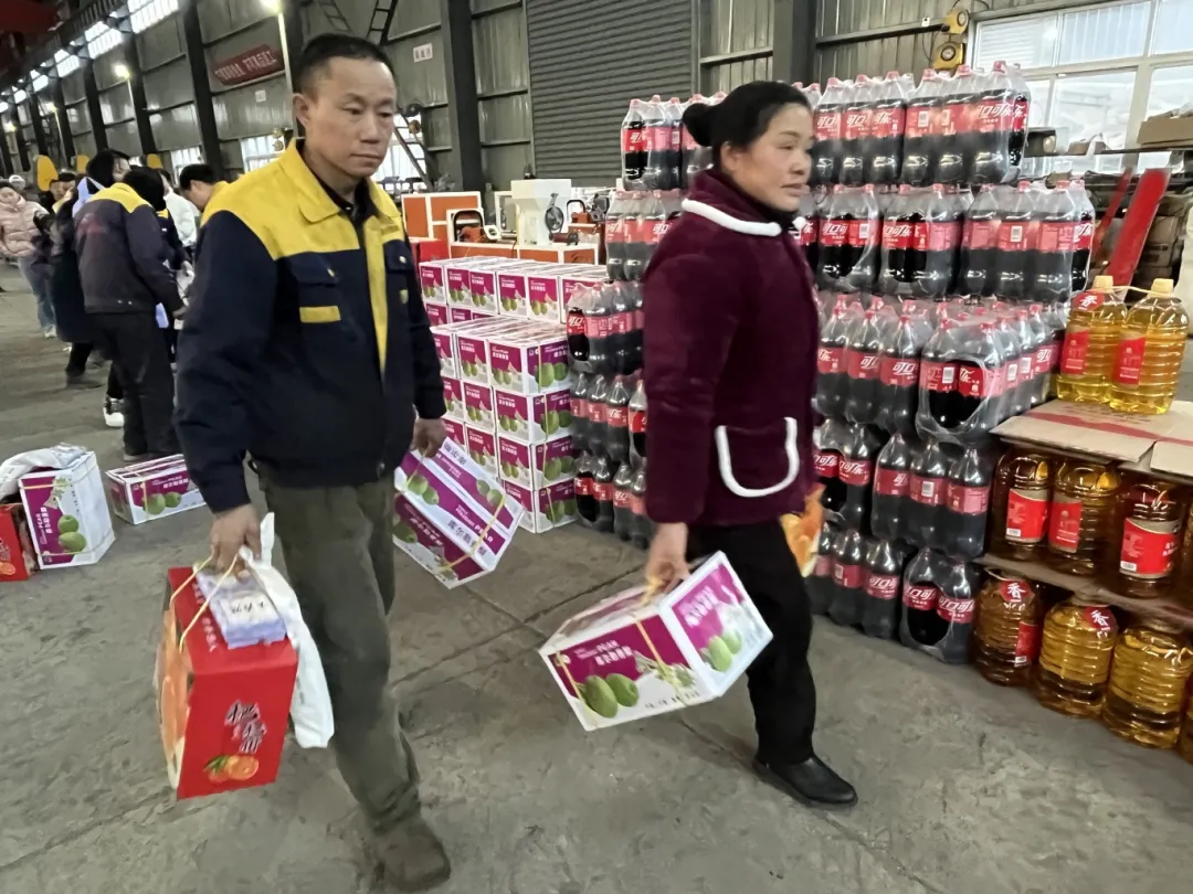 年貨發(fā)放現(xiàn)場(chǎng)洋溢著一片溫馨和諧的氛圍,你來(lái)我往、相互協(xié)作,搬運(yùn)、核對(duì)、井然有序,沉甸甸的禮品提在手里,暖在心里。