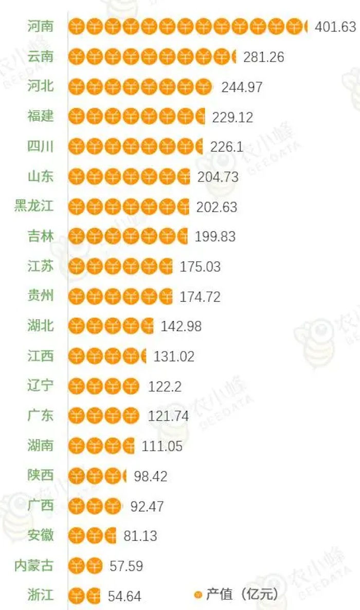 2.2.各省產(chǎn)業(yè)規(guī)模對比:河南產(chǎn)量與產(chǎn)值均位居全國首位